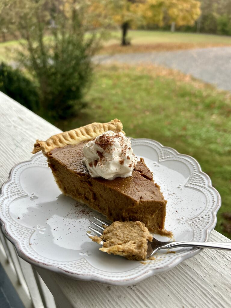 When the pie is finished, allow it to cool for at least two hours before slicing. Serve with Maple Whipped Cream sprinkled with a dusting of pumpkin pie spice.